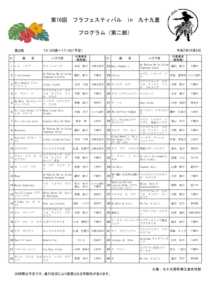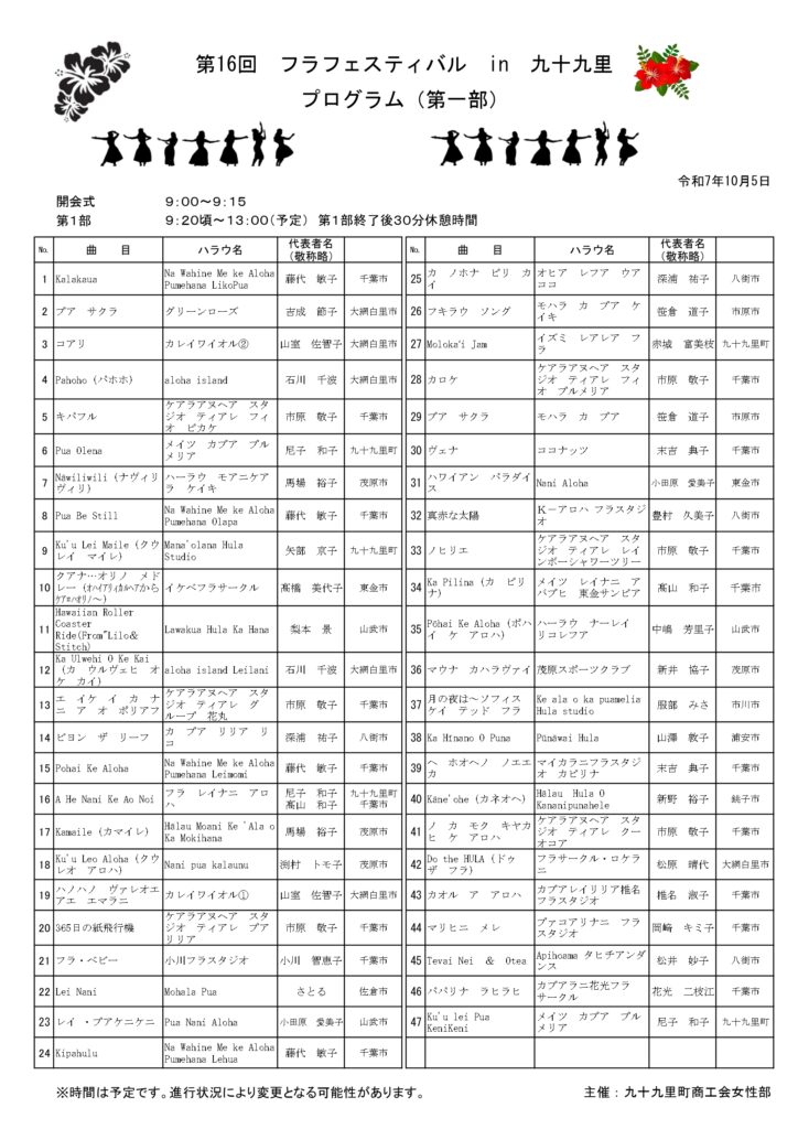 10/5(日) 第16回フラフェスティバルin九十九里(2025) 開催について ※イベントは終了しました